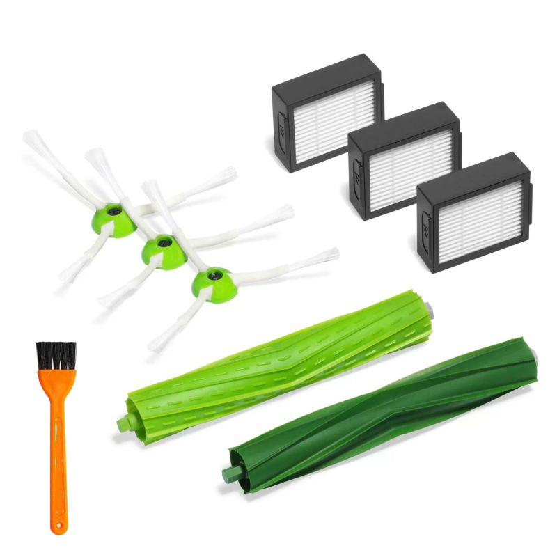 A complete maintenance set designed specifically for your iRobot Roomba e5158 robot vacuum cleaner. It includes everything you need to keep your iRobot Roomba e5158 running at peak performance: a set of main rubber brushes, 3 side brushes, 3 filters, and a handy cleaning tool, in total 9 high-quality replacement parts! A proven, high-performance Plus.PartsĀ® alternative to the original iRobot part number(s) 4624878 / 4639168 / 4757966.