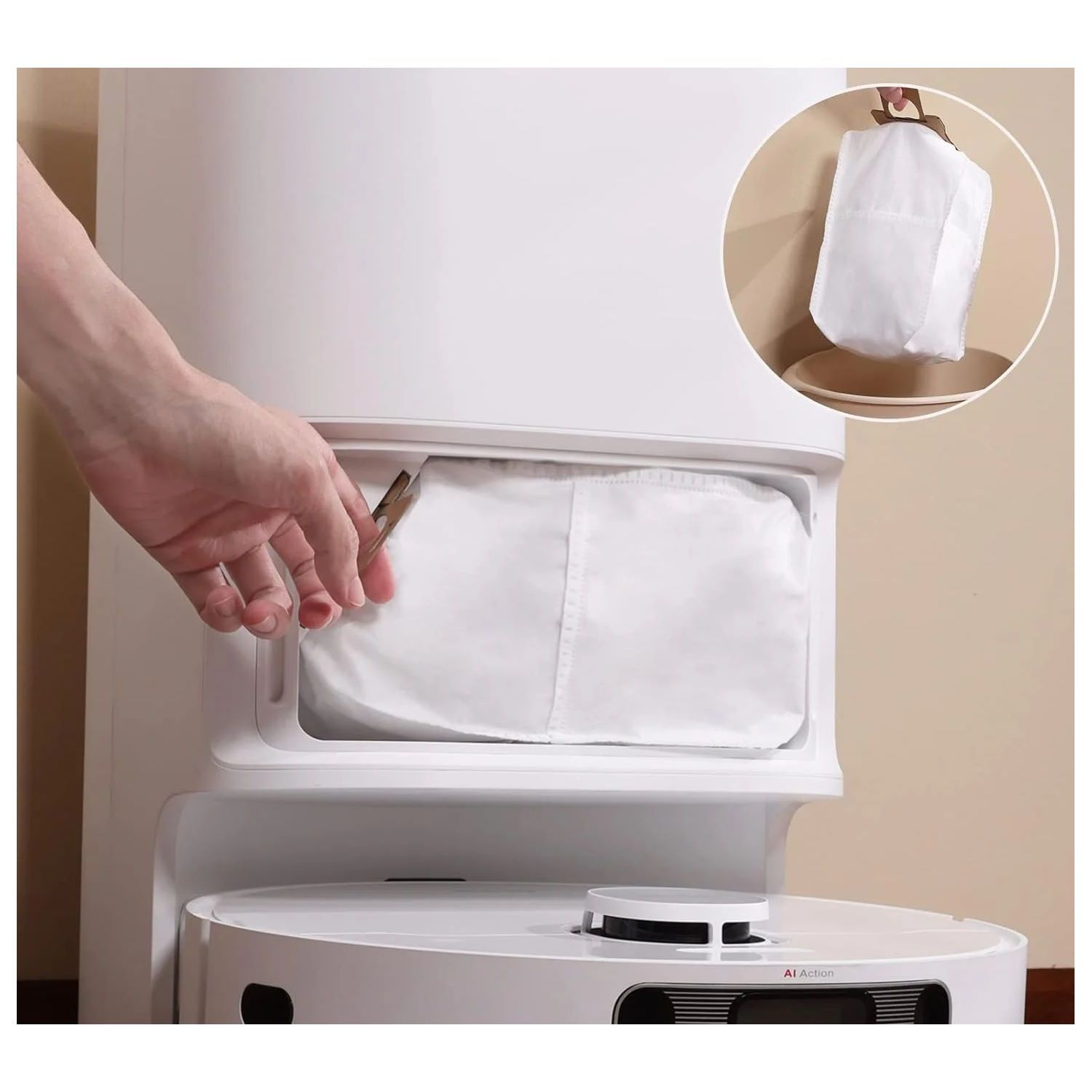 The dust bag in the Xiaomi B101GL is located inside the base station. To replace it, follow these steps: